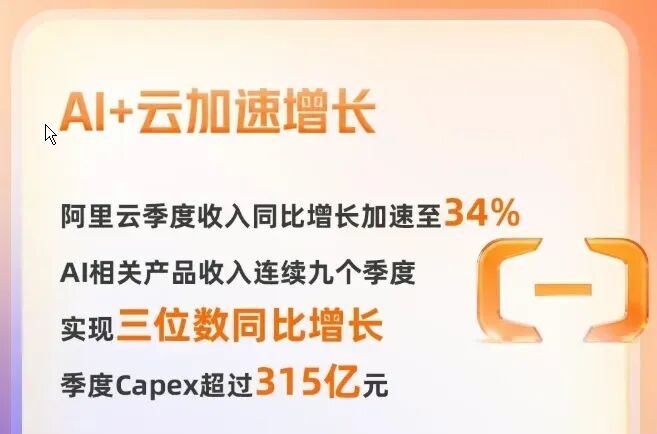 财报显示,报告期内云智能集团方面收入为398.24亿元,总收入及不计阿里巴巴并表业务的收入同比增长分别加速至34%及29%。